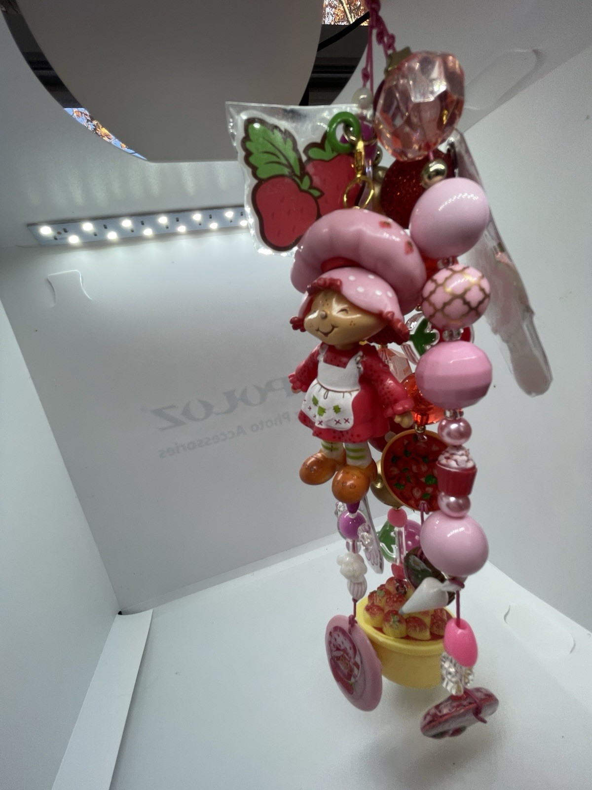 This item is handmade to order. Please allow 7–10 business days for processing before shipment. Each piece is created individually, so slight variations make your item truly one of a kind. This Strawberry Shortcake handmade bag charm/keychain is a premium, one-of-a-kind collectible art piece, lov...