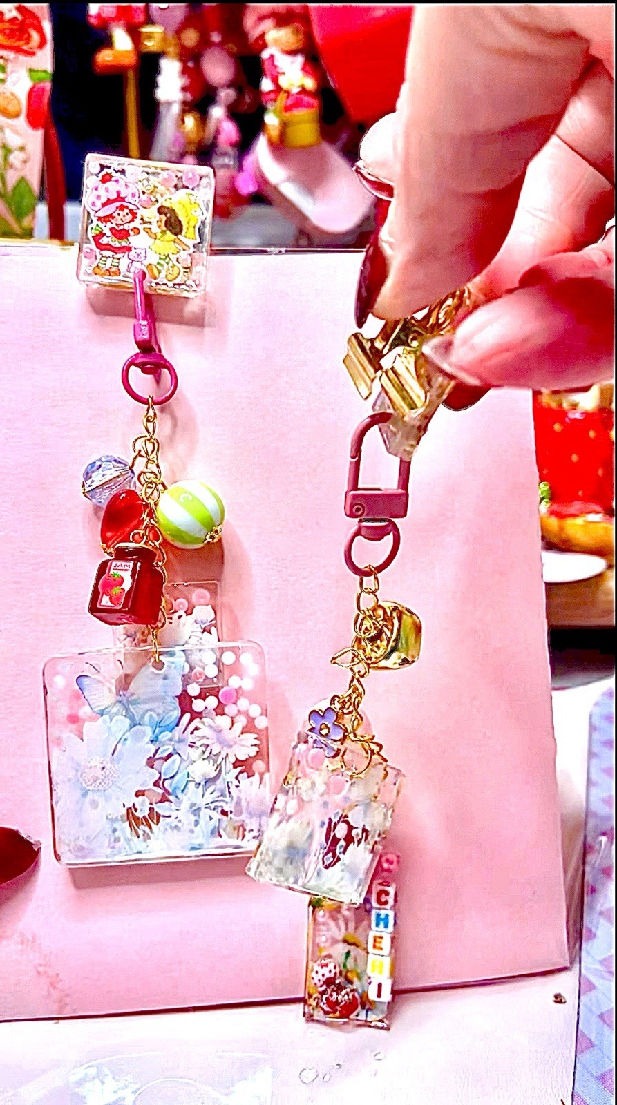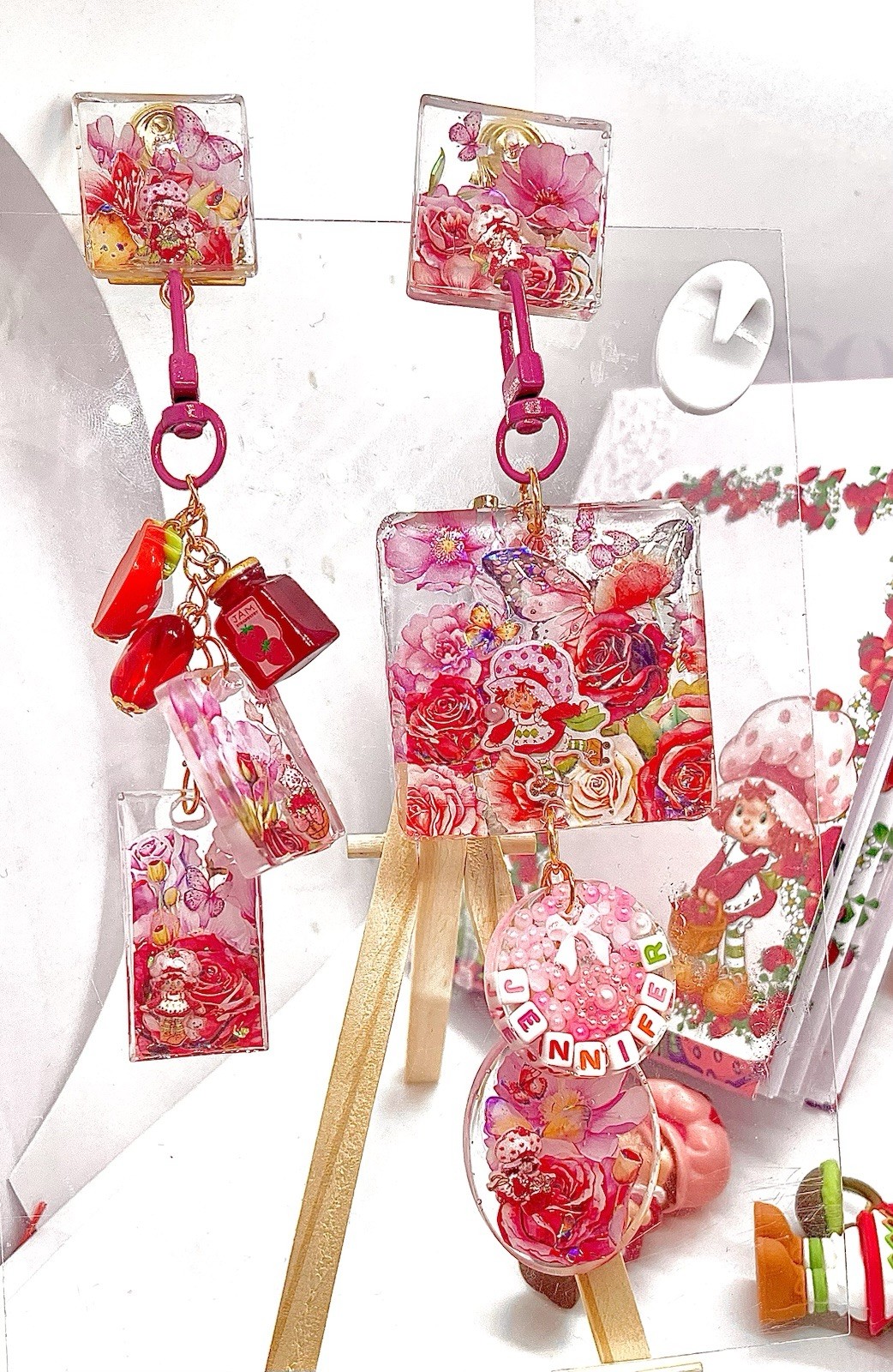 Custom Handmade Resin Clip & Dangle Charm Strawberry Theme - Set Of Two